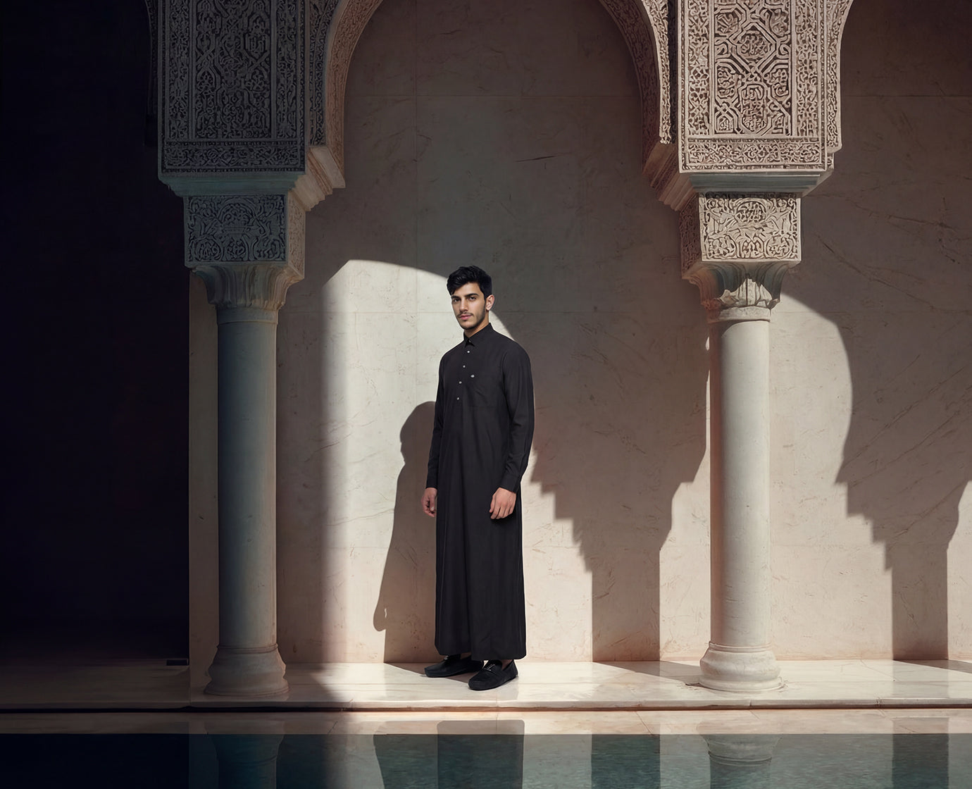 We use internationally sourced fabrics chosen for breathability, durability, and all-day comfort, creating pieces that move effortlessly between daily wear, prayer, and special moments.